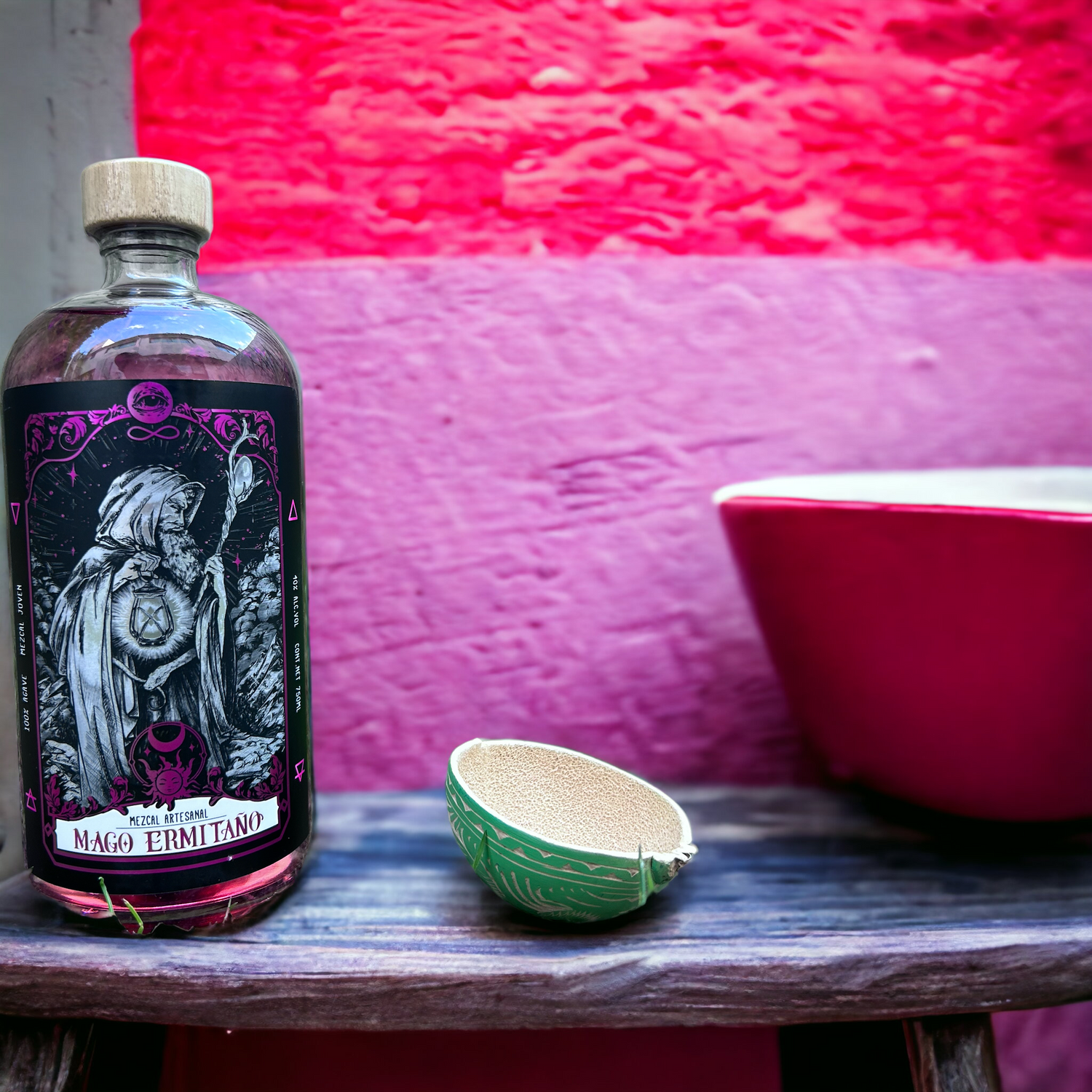 Este mezcal, de la mística región de Oaxaca, combina la esencia del agave Espadín con la tintura de la grana cochinilla, un colorante 100% natural obtenido de los cuerpos secos del insecto Dactylopius coccus. Su color rosa y matices brillantes evocan un atardecer cósmico. Con notas suaves de agave fresco y un toque mineral, cada sorbo revela un cuerpo robusto y un retrogusto semi-seco.